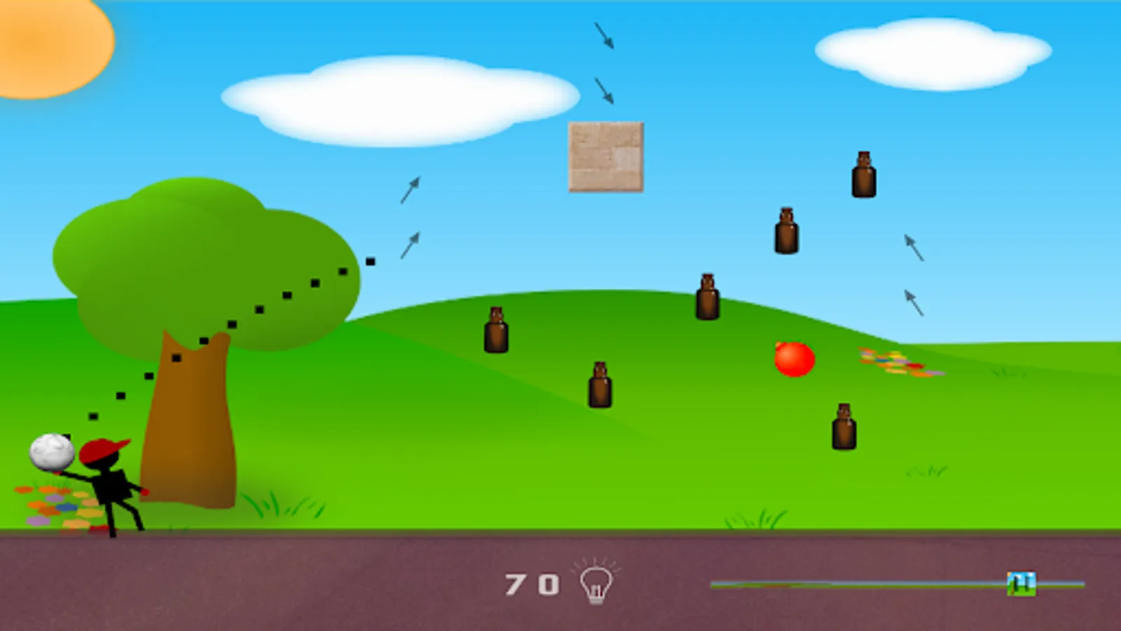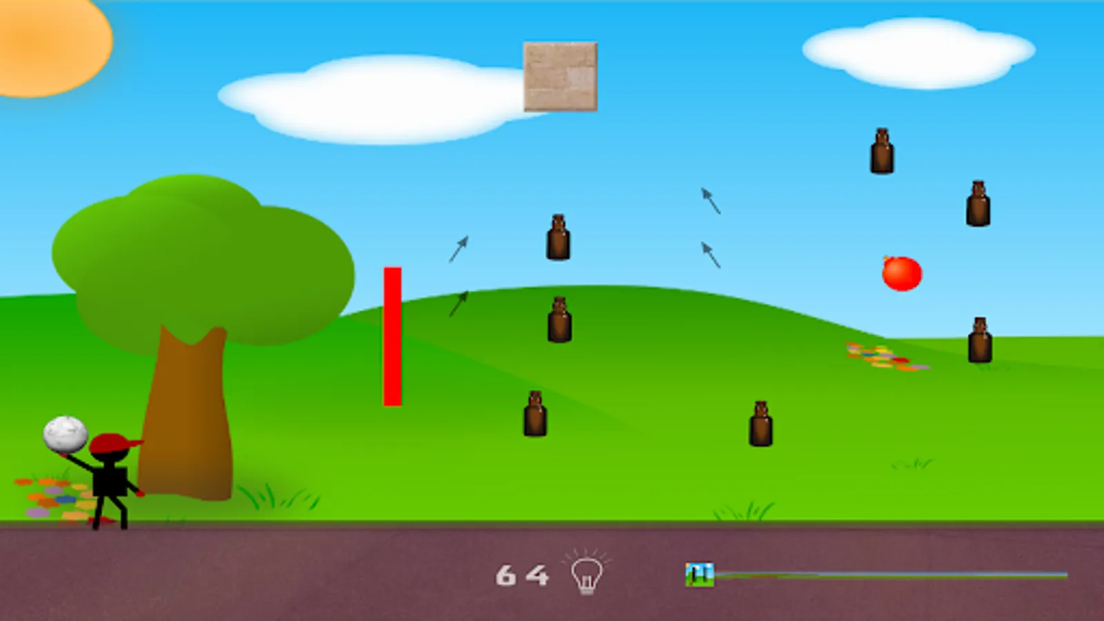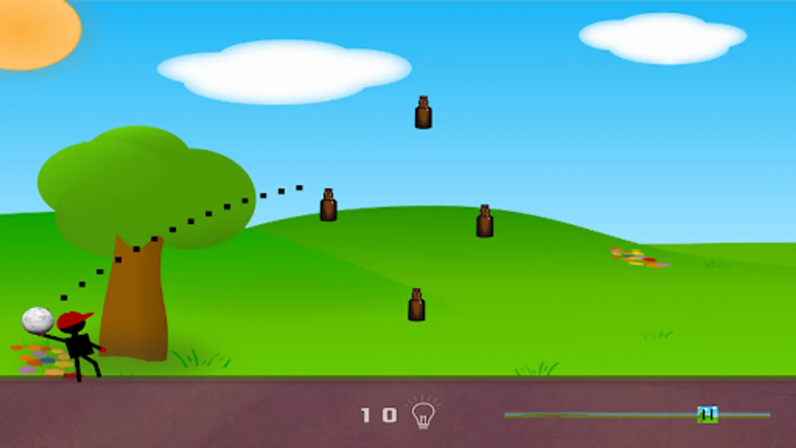 Throw the stone such that all bottles are hit at once. With 200 unique levels and 3 worlds, this game will keep you hooked.