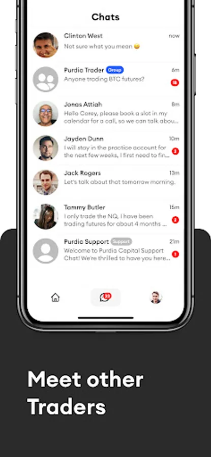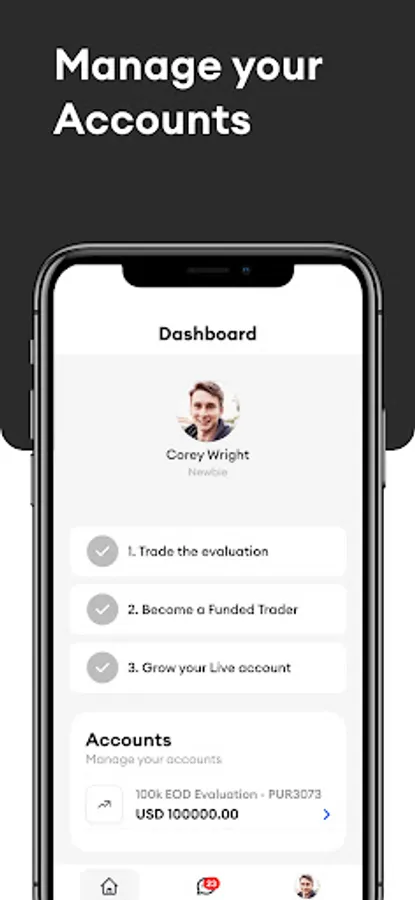 Elevate your trading experience with our powerful trading management app. Designed exclusively for retail traders, our app provides a comprehensive suite of services and tools accessible through the chat, facilitated by our expert coaches and risk managers. With their guidance, you'll have access to personalized advice and coaching tailored to your trading needs. Our vibrant community of traders will further enhance your experience, allowing you to connect with like-minded individuals who share your passion for the markets.