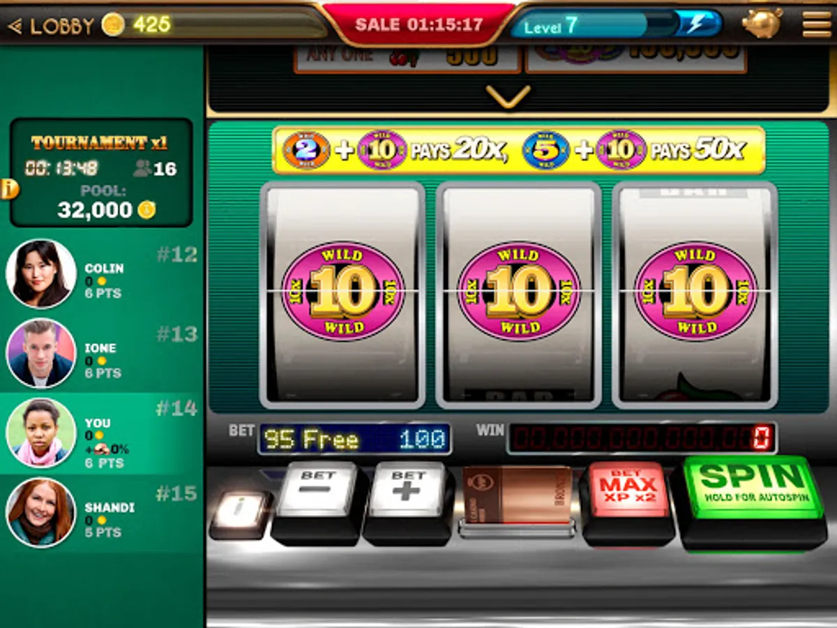 Install and play on the best classic slots in this 3D free casino and enjoy a new experience in slot machines from Las Vegas. Start with a one-time bonus of 100 Free Spins. Enjoy Las Vegas from all angles with the most amazing graphics and the most realistic machines. Unlock all the games and conquer the casino tower to find out new slot games and win big!