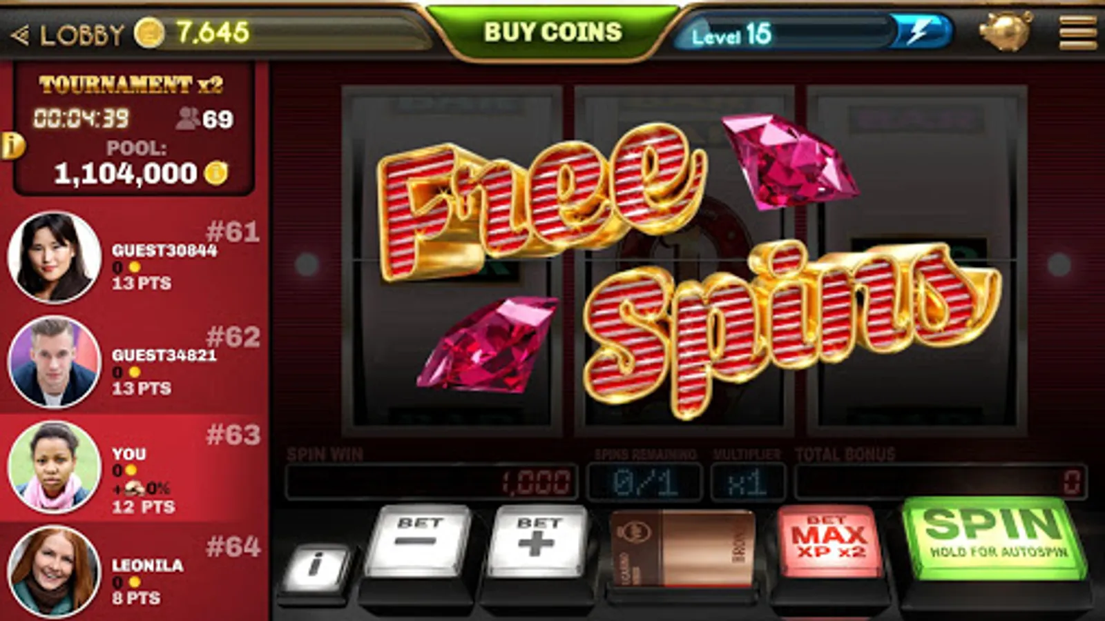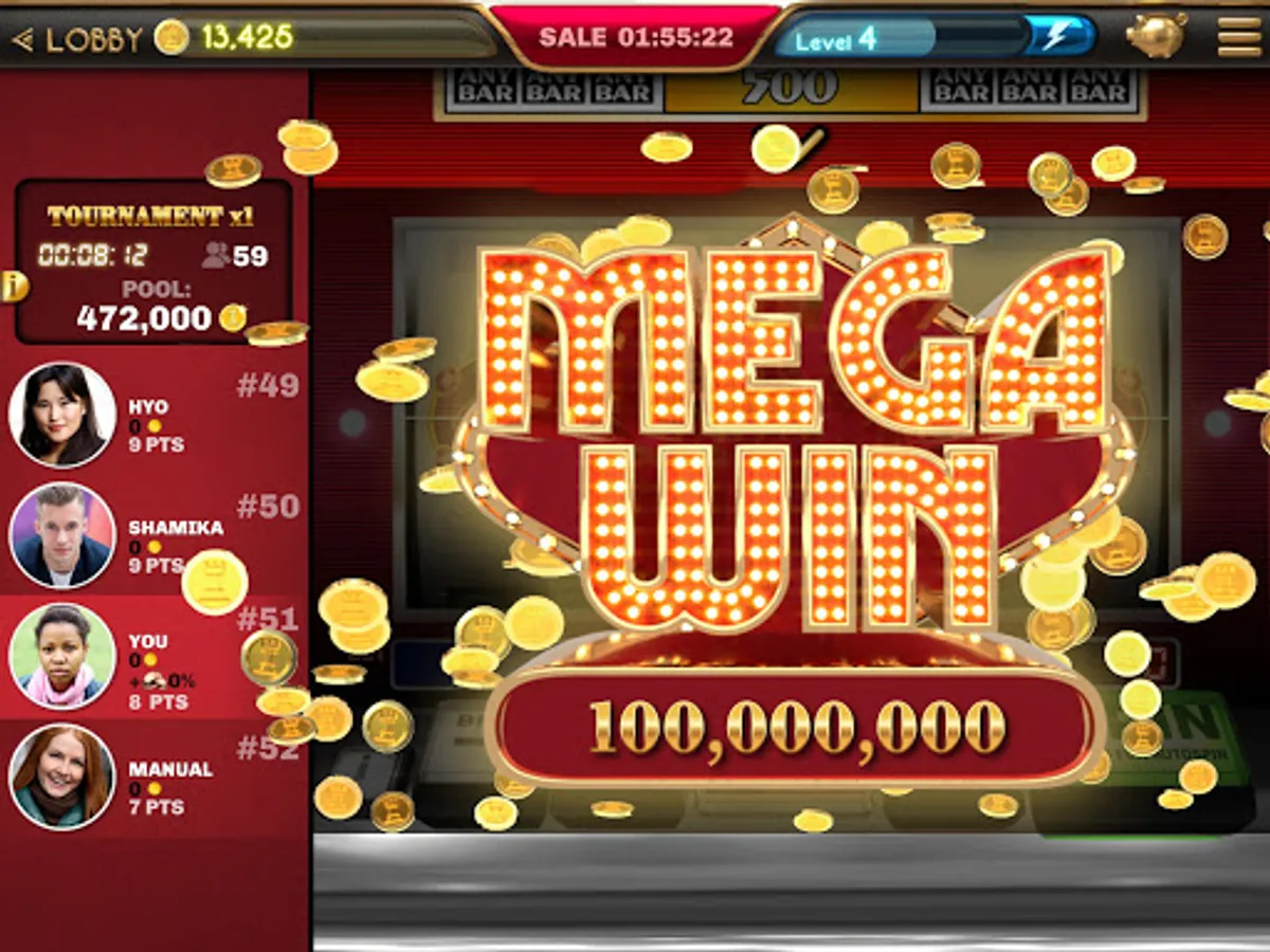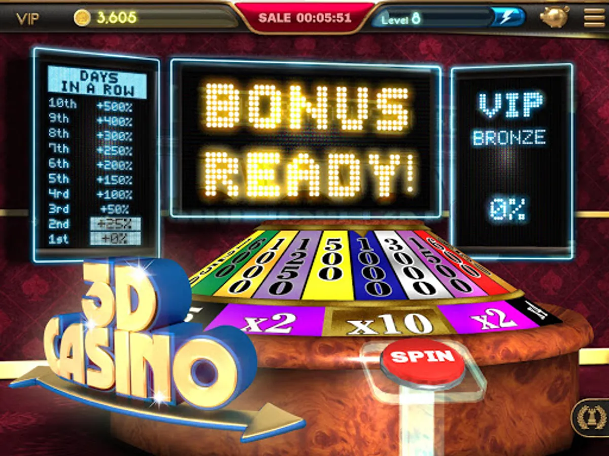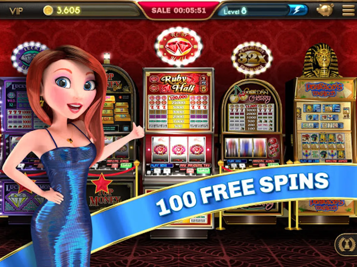 Install and play on the best classic slots in this 3D free casino and enjoy a new experience in slot machines from Las Vegas. Start with a welcome bonus of 100 Free Spins. Enjoy Las Vegas from all angles with the most amazing graphics and the most realistic machines. Unlock all the games and conquer the casino tower to find out new slot games and win big!