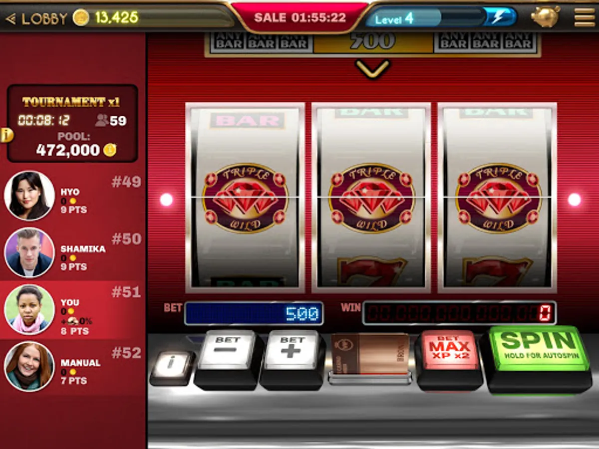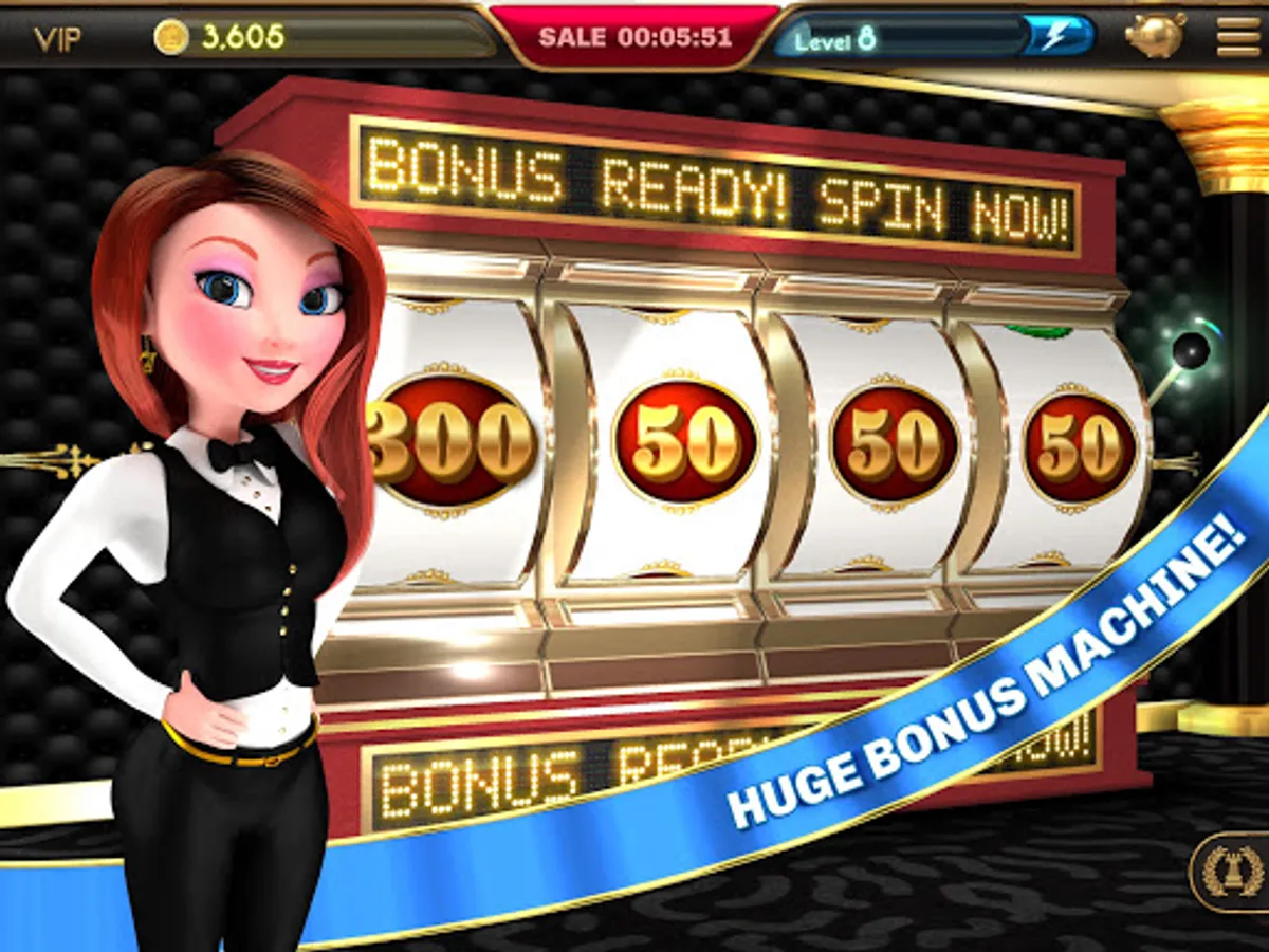 Inspired by the real ones in Las Vegas, the Lucky Wheel and the Giant Slot Machine will increase your chances to win big thanks to their daily and hourly bonuses that will allow you to keep playing all the casino games. Play several days in a row to increase your prize!
