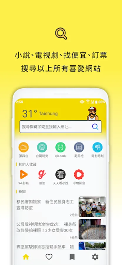 3. Whether you want to watch a movie, check movie time, or Taiwan Railway train timetable, just click the list to search immediately