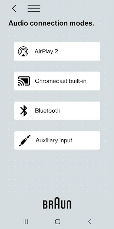 To get started, please plug in your speaker, open Braun Audio app and follow the instructions.