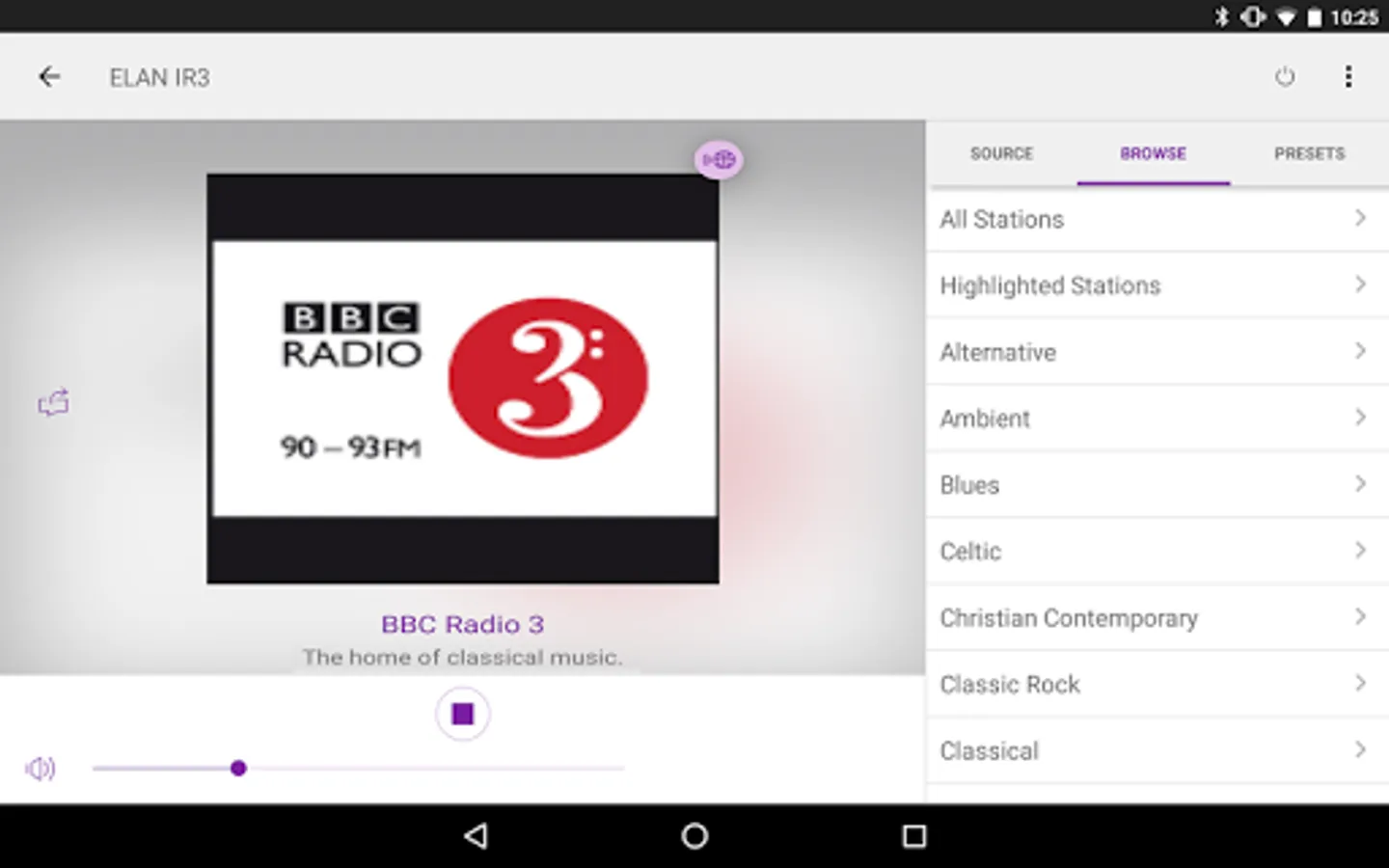 Pure Select is the companion app for our Evoke F3 with Bluetooth, Evoke C-F6, Elan IR3 and Elan IR5 connected radios. You can use the Pure Select app to tune your radio into over 25,000 internet radio stations or your favourite digital or FM stations, access the Spotify* app and adjust the volume from the convenience of your phone or tablet.