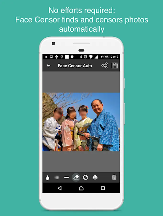 In case you want to control how faces and other objects are censored you can censor them manually, just choose needed tool and use it like a brush!