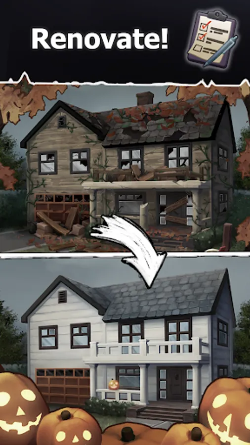 Live out this dreadful story by solving hundreds of puzzles, getting stars for moving forward in the renovation of your house, get extra bonuses to increase your chances of survival!