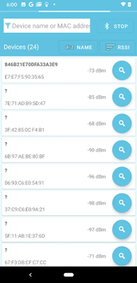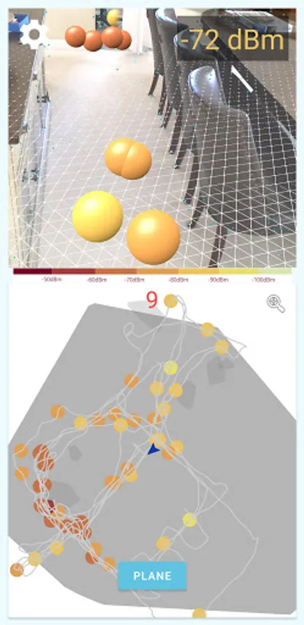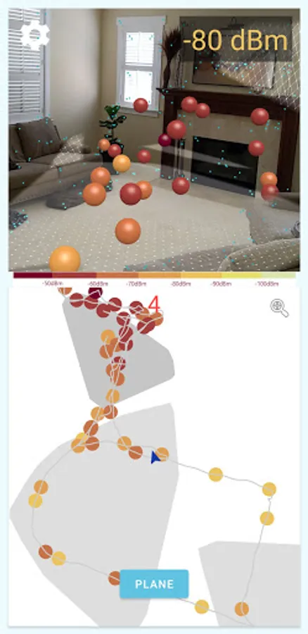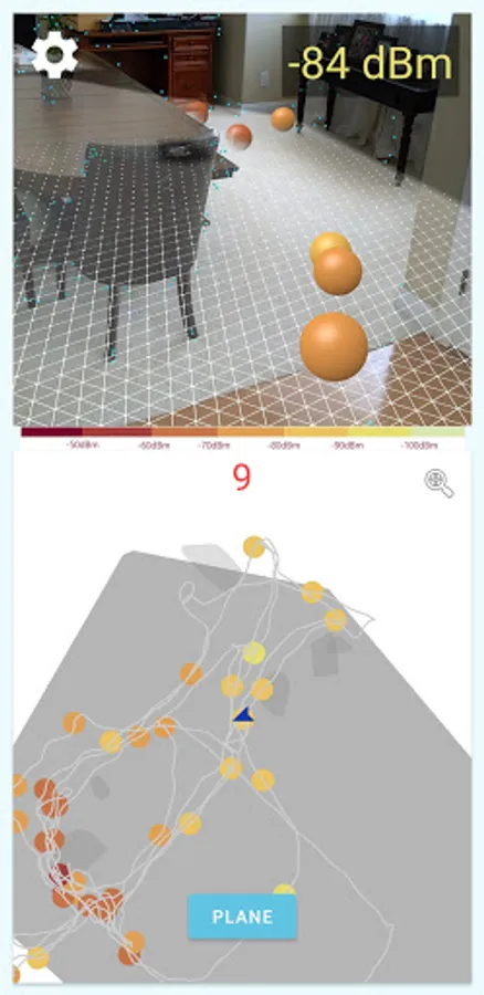 Select BLE signals that are gathered near the device. Using AR users can map the room to build a map of signal strenth to more easily find a missing device. BLE signals are selected to show signal strength and a visual representation of where the signal might be. Users can use this screen to track down and find BLE signals.