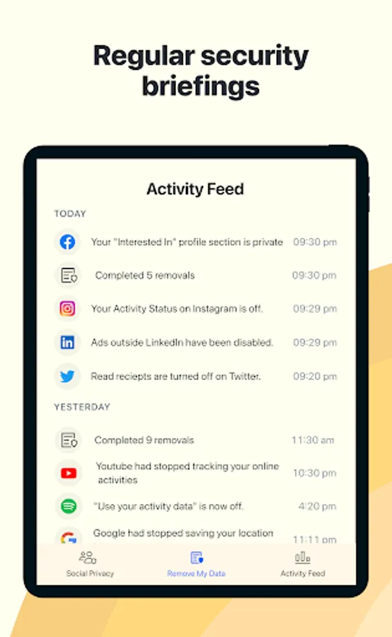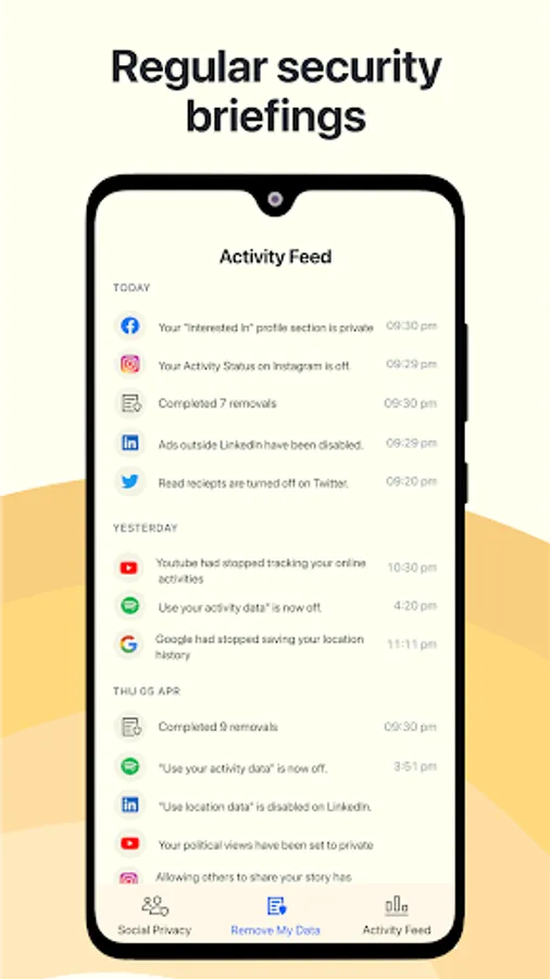 3. Social Media Auditing: Take charge of your social media privacy with our cutting-edge auditing process. Simplify settings, receive tailored recommendations, and secure your data with a simple tap.