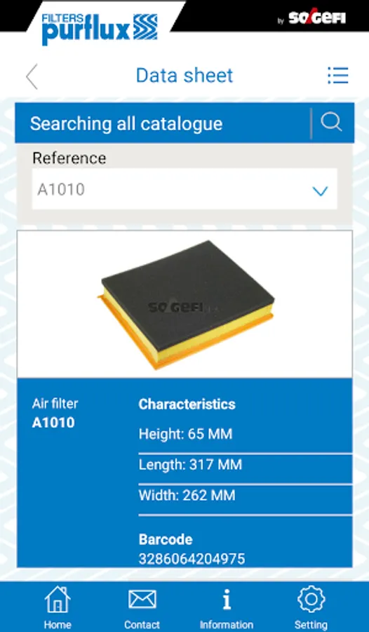 Simple to consult, the PURFLUX application makes it easy to identify the appropriate reference.