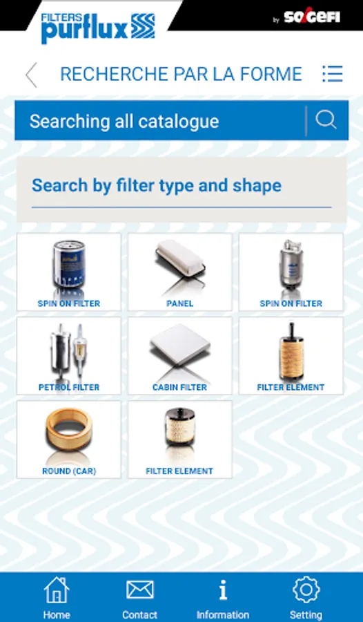 You can search by application, competitor reference, type of vehicle, shape and dimension of filter shape or reference.