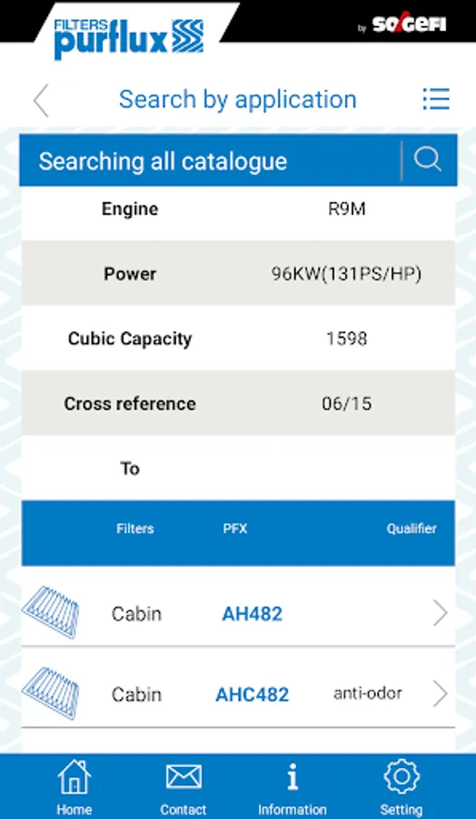 The app also provides access to information about new products, Purflux videos, news, as well as fitting and installation instructions for cabin filters.