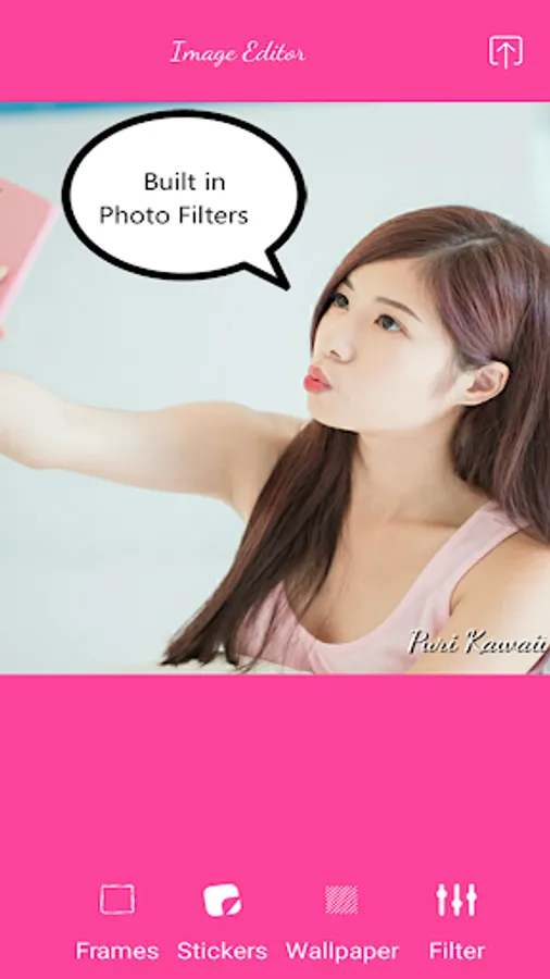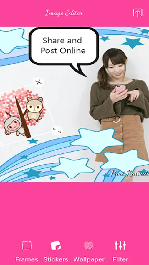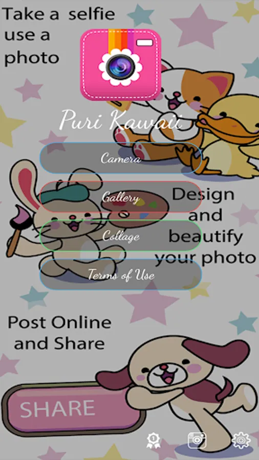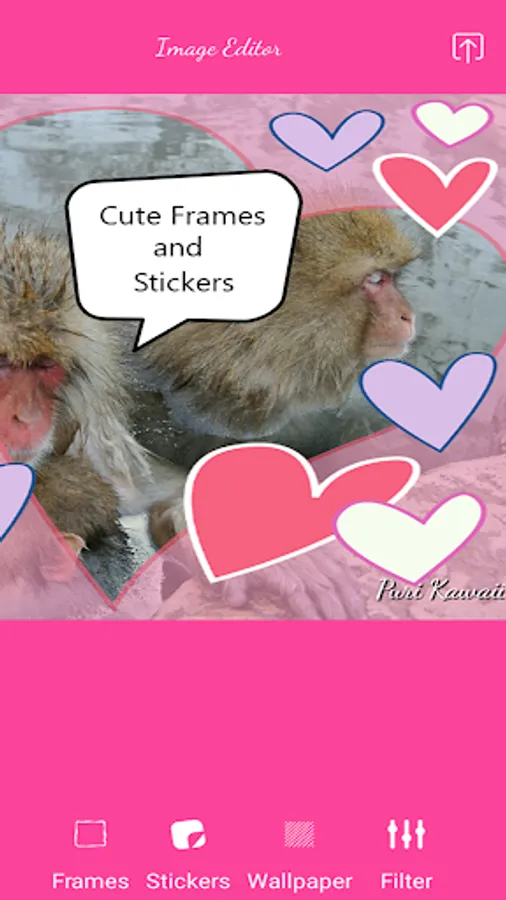 Choose from an ever growing library of Kawaii style frames and stamps. Basic photo editing tools and filters to enhance your photo.