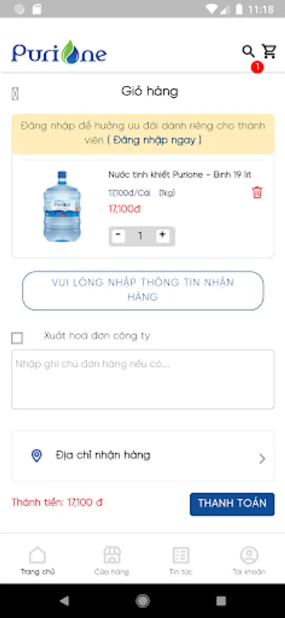 PuriOne is an application to buy, sell and exchange water bottles online for households or agents.