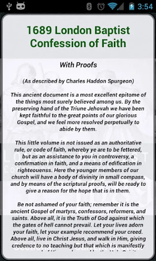 This ancient document is a most excellent epitome of the things most surely believed among us. By the preserving hand of the Triune Jehovah we have been kept faithful to the great points of our glorious Gospel, and we feel more resolved perpetually to abide by them.