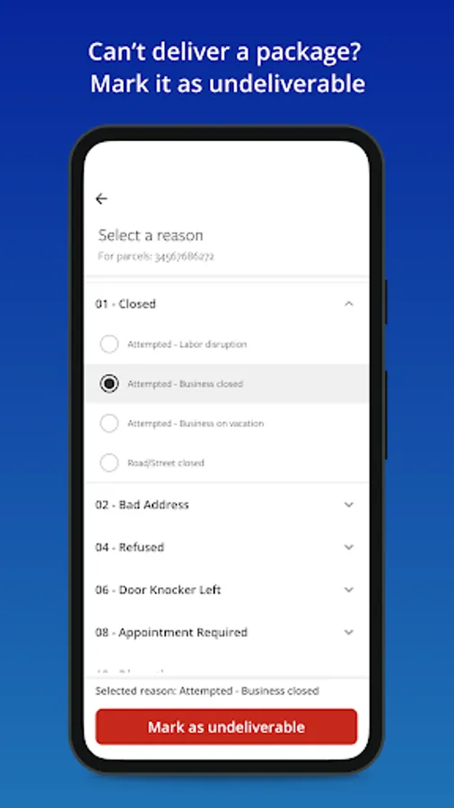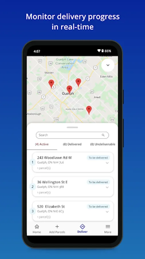 -View real-time package status: ‘delivered’, ‘to-be-delivered’, and ‘undeliverable’