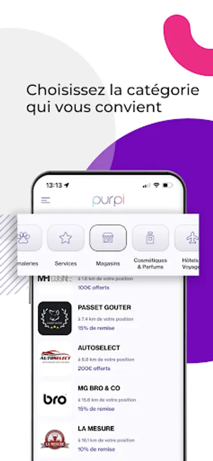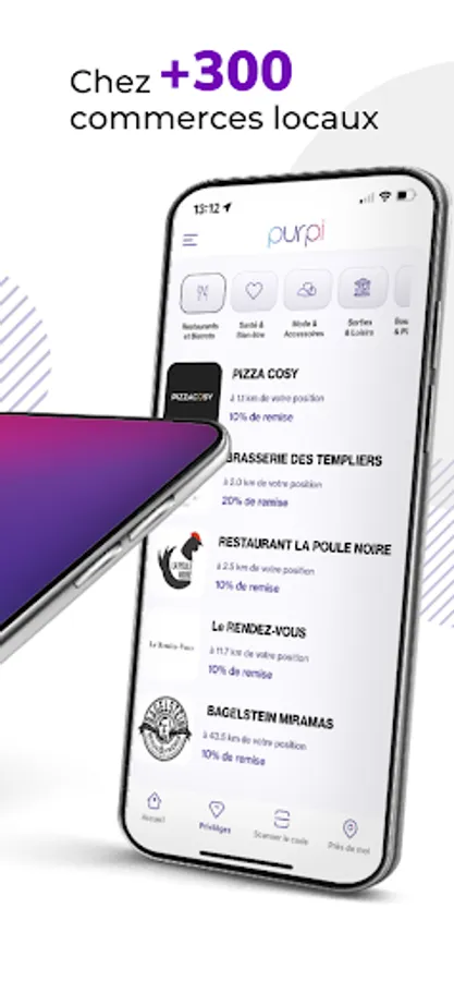 Purpi is a mobile application allowing its users to benefit from customer advantages at a network of partner brands nearby or online. The advantages are permanent, valid all year round and obtained by simply presenting a QR Code called “Purpi Pass”