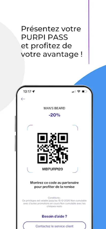 2 - Once at the checkout, the customer will present a QR code called "Purpi Pass" containing their benefit.