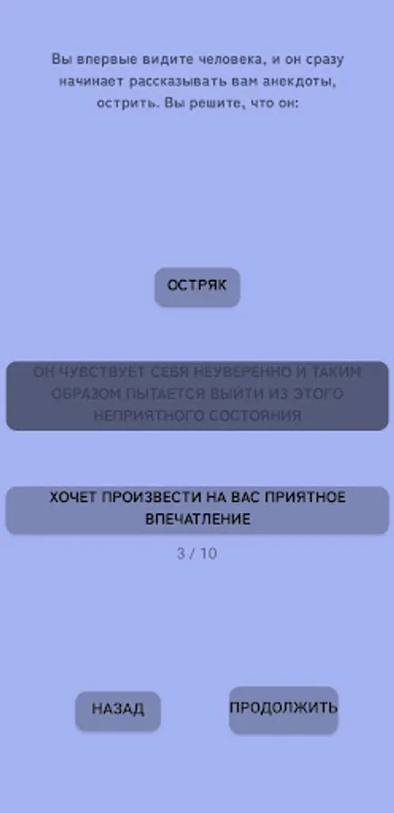 There are 10 questions in the test. Take the test to understand how much you know how to understand people.