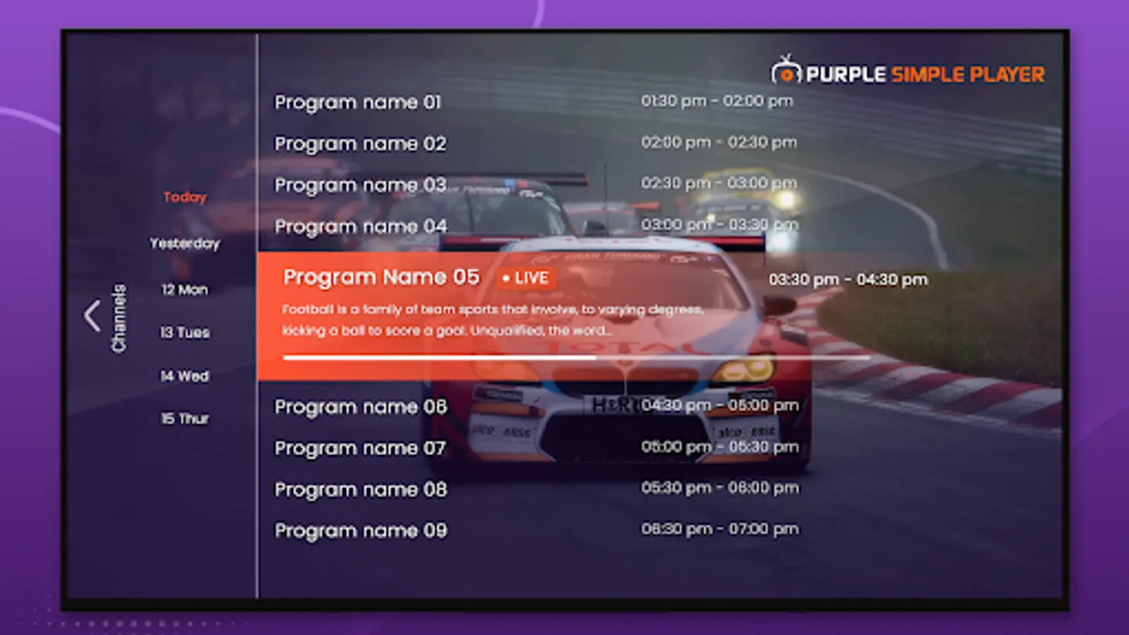 - The screenshots shown on this page are provided as examples only and do not point to any actual video content. Neither PURPLE PLAYER nor its founder provides digital content and is not responsible for your content. To use this application, you are asked to provide your digital content.