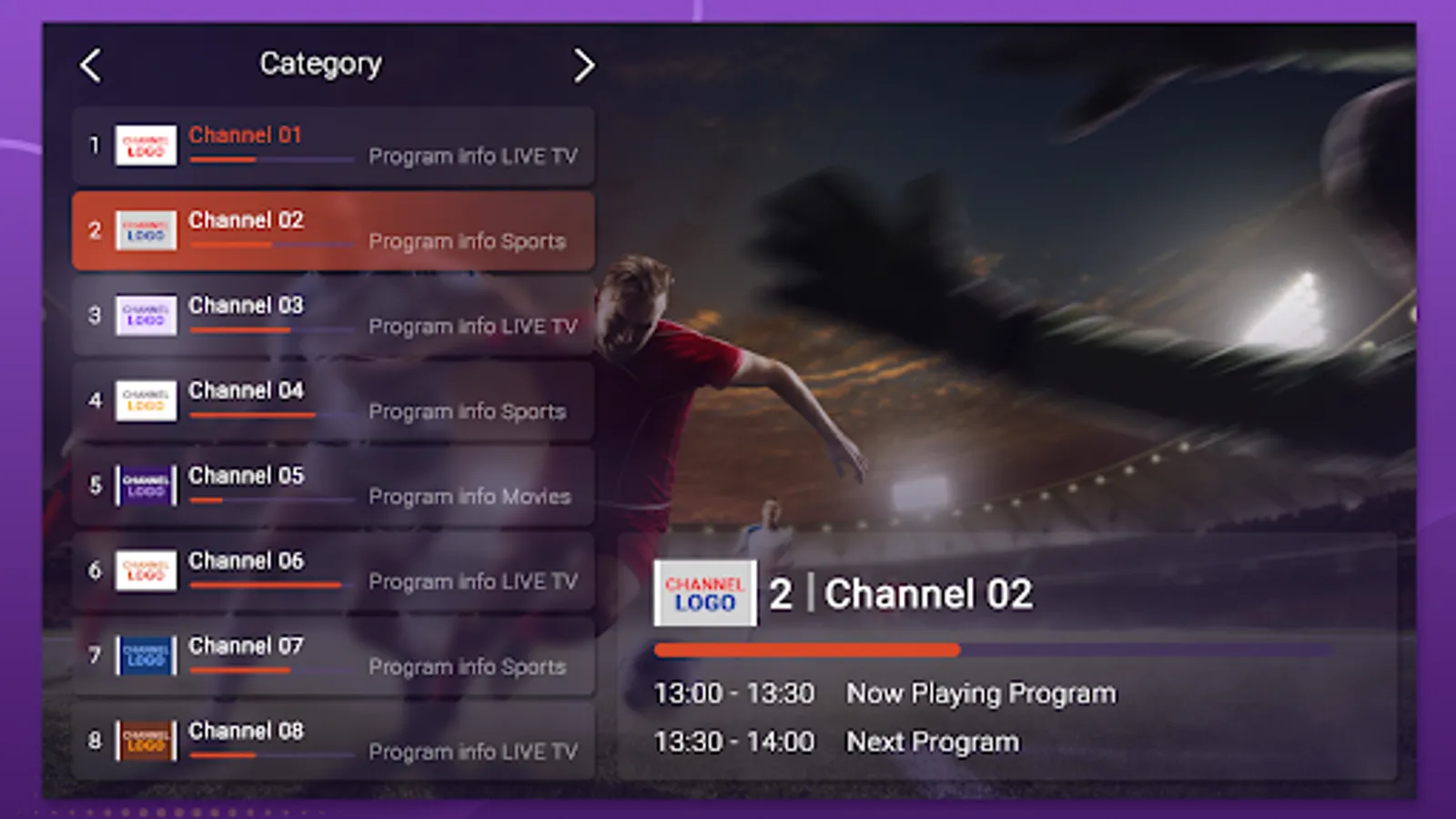 Download the IPTV Purple Launcher now and get true tv experience in your smart TV