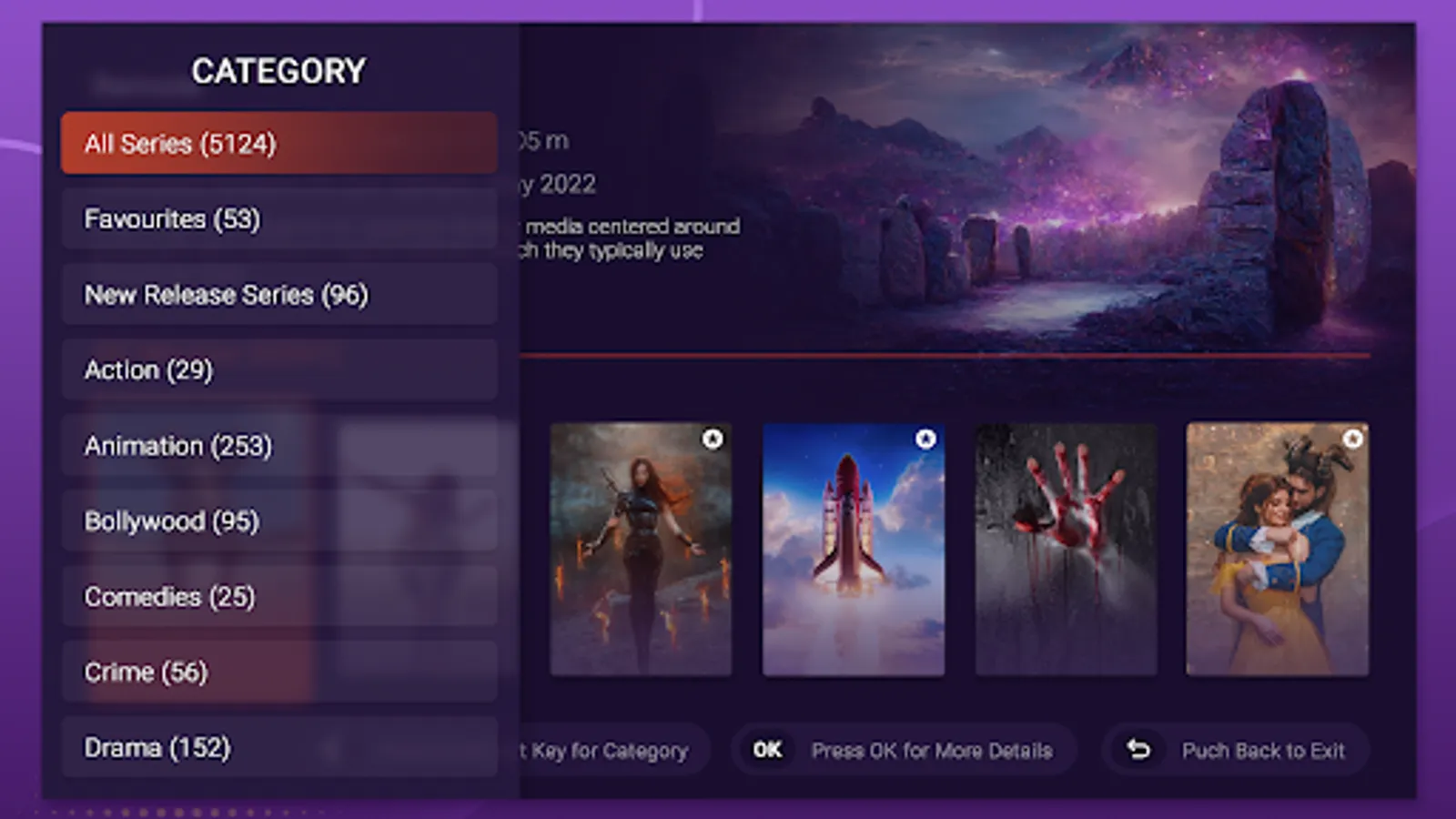 Watch Live TV, Movies and Series with Purple TV Launcher.