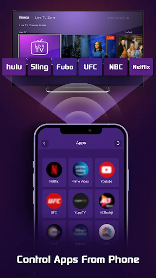 Purple Remote is a highly competitive and easy-to-use android application. Purple Remote has an attractive and simple user interface with great user-friendly control features. Connect phone with TV and control your TV directly from your smartphone. The remote control does not require any prior set up and the remote app automatically scans for your device to get connected. Control TV remote control or control TV remote has intuitive features such as a TV guide, scrolling channels up and down, a smart trackpad, and regulation of volume. The only thing that needs to be ensured is that your phone and TV are connected to the same Wi-Fi network.