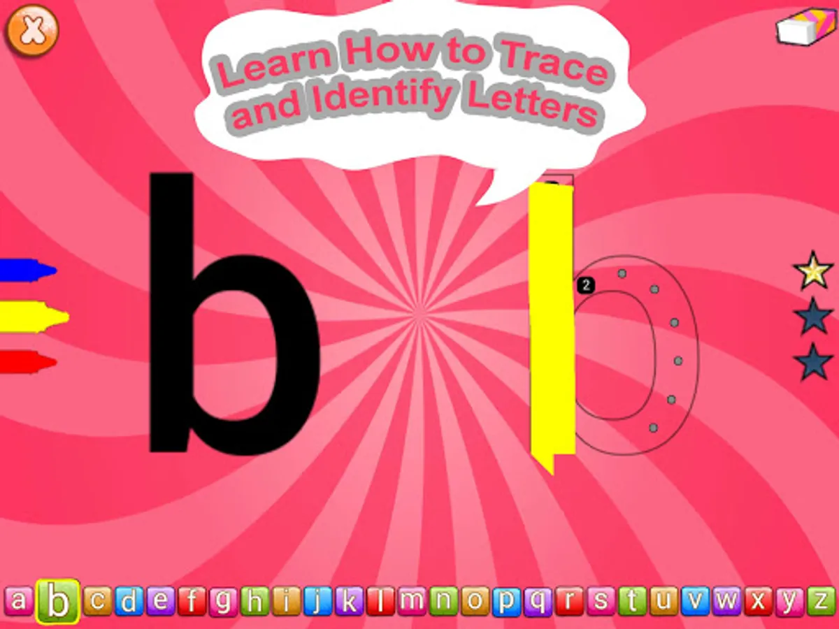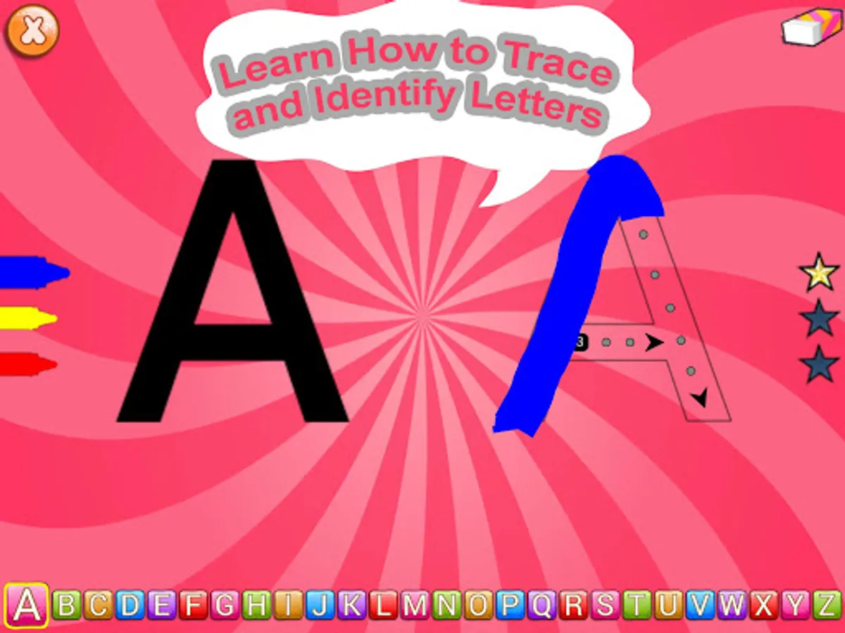 - It features a series of tracing games to help kids recognize letter shapes, associate them with phonic sounds, and put their alphabet knowledge to use in fun matching exercises. Any toddler, kindergarten or preschool age child can learn English and the alphabet simply by following the arrows.