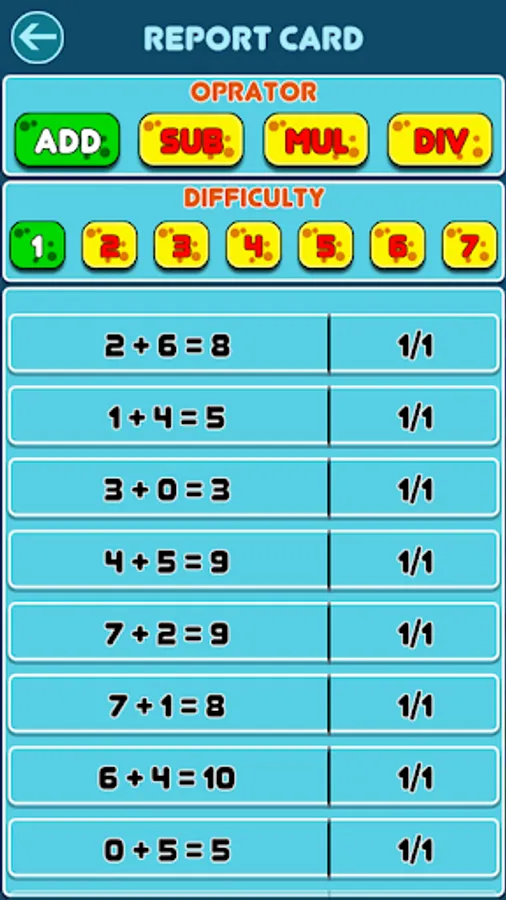 Math Bingo includes a detailed Report Card section where parents and teachers can monitor progress and help practice areas of weakness.