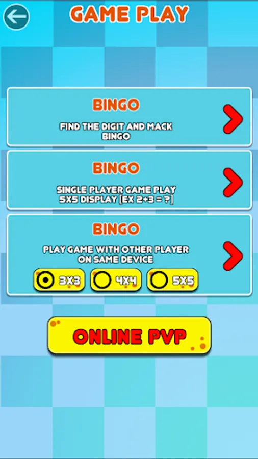 ✔ Multi-Player : Play BINGO the other player on same device with 3*3, 4*4 or 5*5 grid.