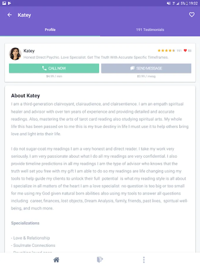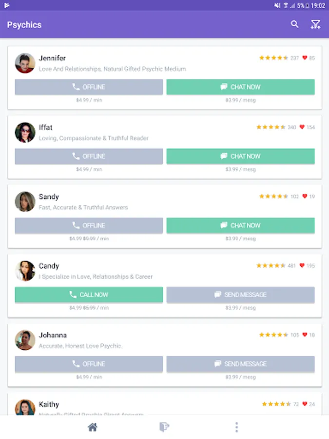 Our mobile app is built on the latest technologies which enables you to connect to a psychic advisor instantly on live chat, phone or video. You can send messages to psychic advisors anytime. All the conversation happens in real time.