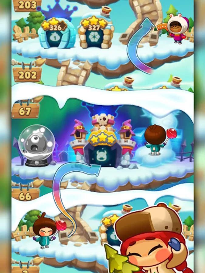 Join the adventure of adorable kids, Bruce, Boo and Namu, to the top of Ice Tower where poor Gingerbread friends are trapped! Let’s save them from bad monsters!