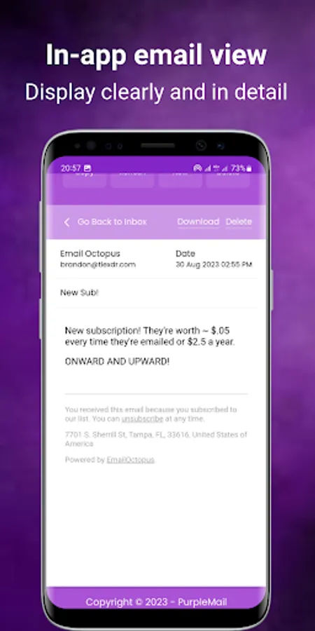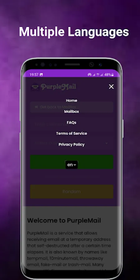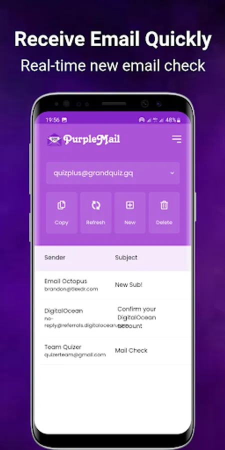 Easily generate disposable temporary email addresses and receive instant emails, including attachments and photos, with the PurpleMail app. Simplify your email experience today!