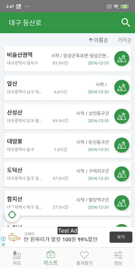▲ You can easily find the trails you want to check in order of name and distance, and you can check them more quickly by using the search function.