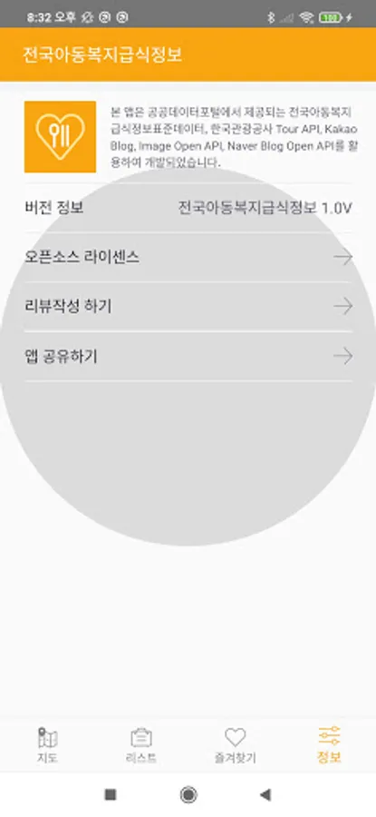 The “National Child Welfare Meal Information” app provides information on nationwide child welfare meal restaurants using publicly available data provided by the public data portal.