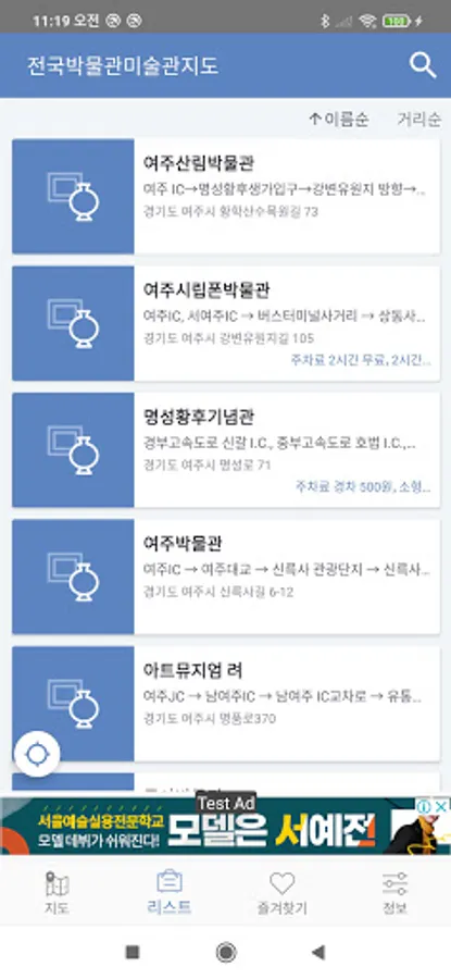 ** Based on your location, you can check the location of the museum/art museum in order of distance.