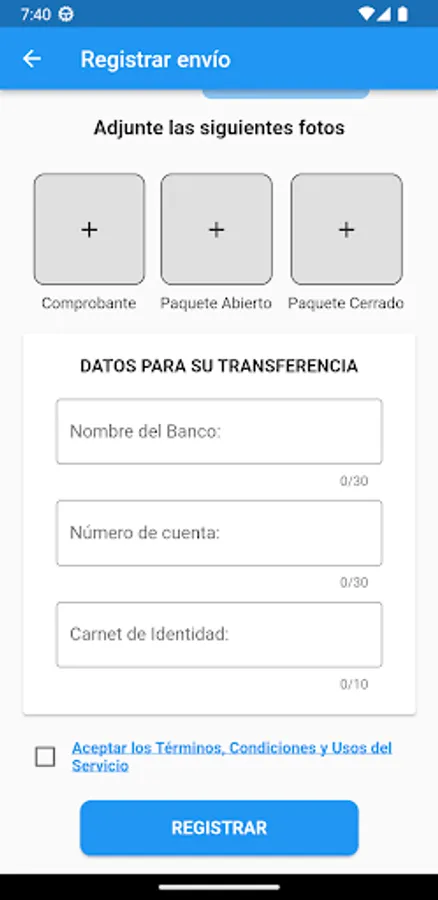 The client will be able to register his shipment and deposit it in our bank accounts, and the seller will send his product with complete confidence to the client. Once the customer is satisfied with his product, the corresponding money will be credited to the seller's account.