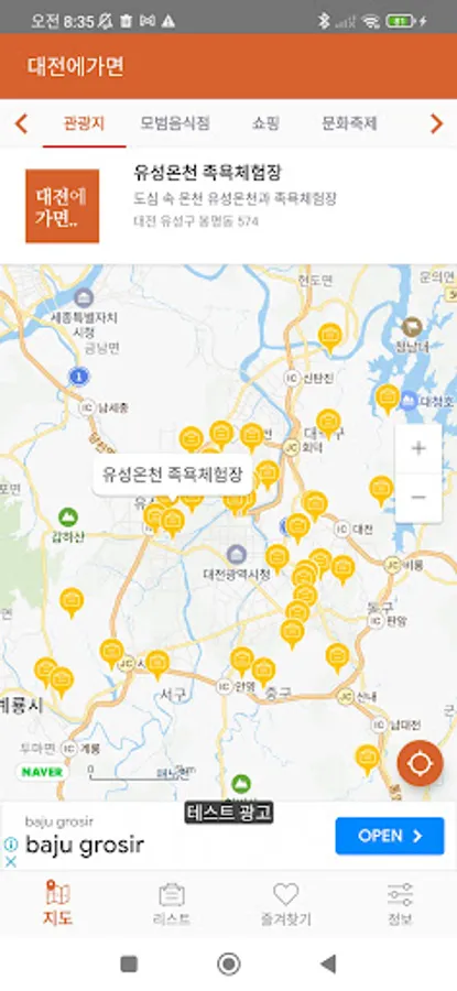 Daejeon's lodging, restaurants, tourist attractions, and shopping information are all in one application.