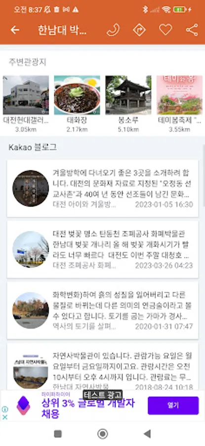 It was developed using information disclosed through the open APIs of Korea Tourism Organization TourApi, kakao, and Naver.
