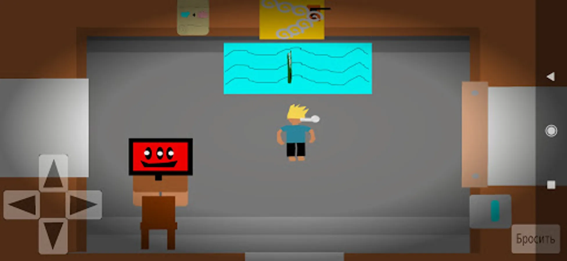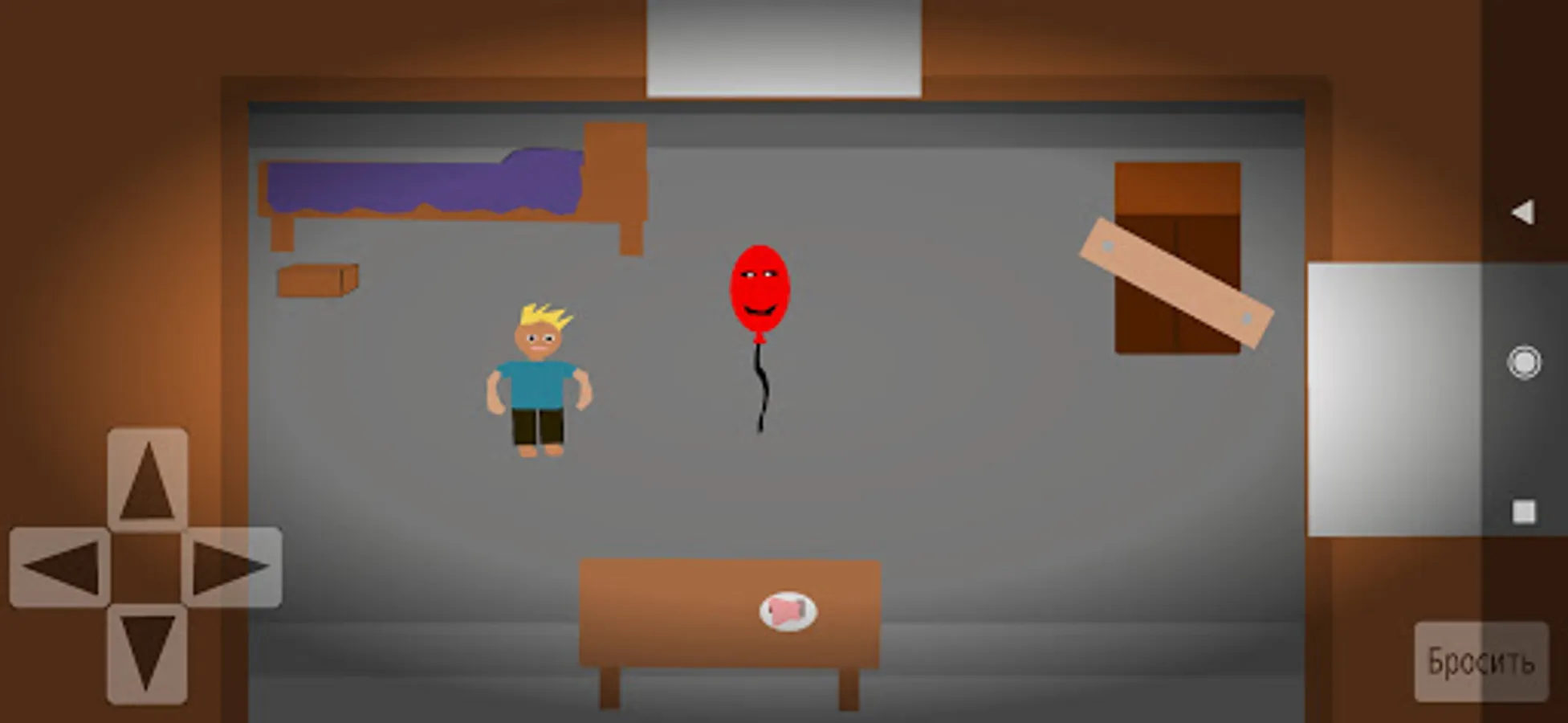 2D хоррор игра. Там надо пройти квест и сбежать из дома сумаcшедшего шарика. Он будет гоняться за главным героем. Если шарик догонит вас то будет гейм овер. Сбежать будет не просто, главную дверь охраняет крокодил и ещё три замка. Крокодил тоже убивает. А в концовке будет смешной звук.