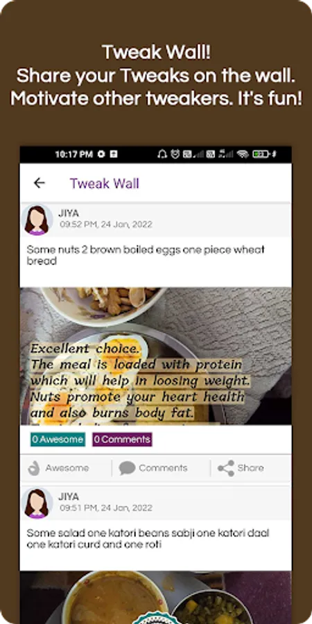1. Use the app to take a photo of the plate. Get a tweak of your plate from a certified nutritionist as you are eating