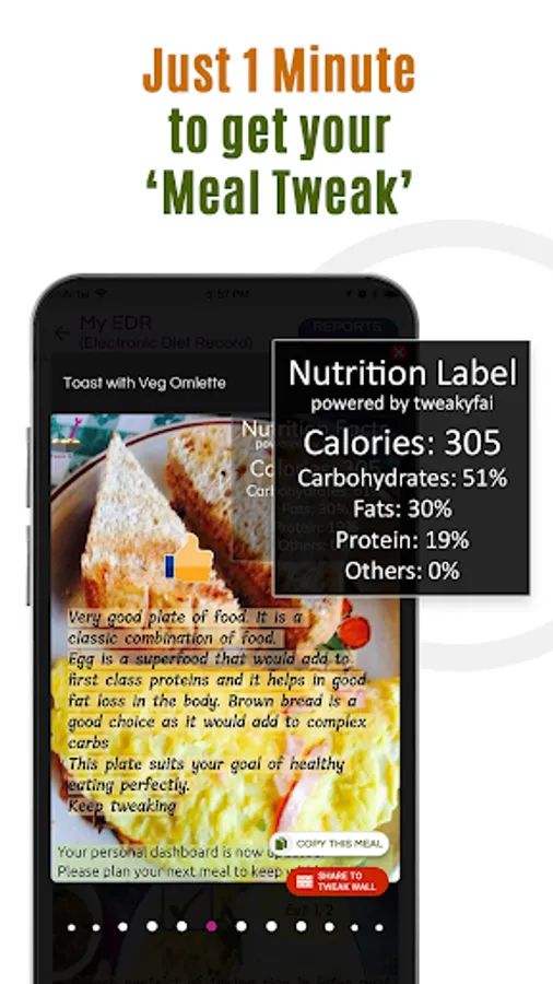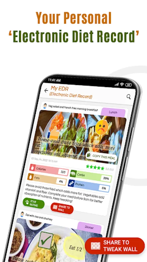 1. Use the app to take a photo of the plate. Get a tweak of your plate from a certified nutritionist as you are eating