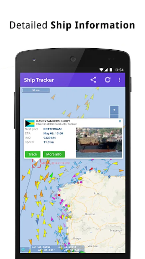 Ship Tracker - Live Marine Radar is a marine tracking tool that displays worldwide ship & maritime information in real-time. These information includes ship data such as latitude and longitude positions, origins and destinations, vessel numbers, vessel types, headings and speeds.