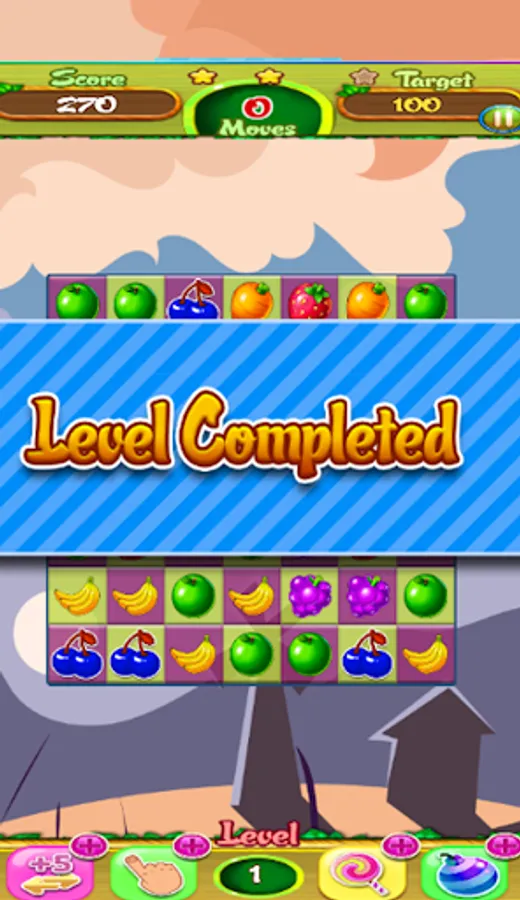 fruit game is an interesting and splendid match-3 candy game. Play around hundreds of amazingly tasty puzzle levels and join the sweetest and tasty journey in fruit game!