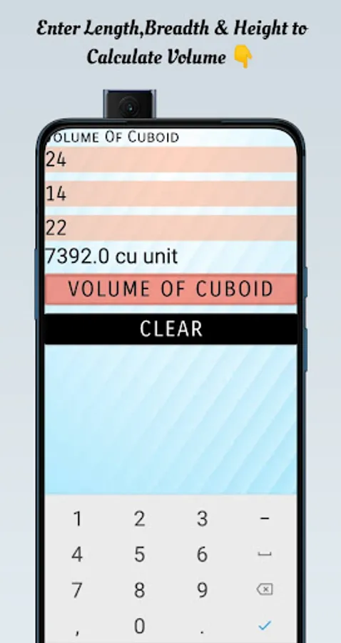 In this app you can calculate Area and Volume of 2D and 3D shape.