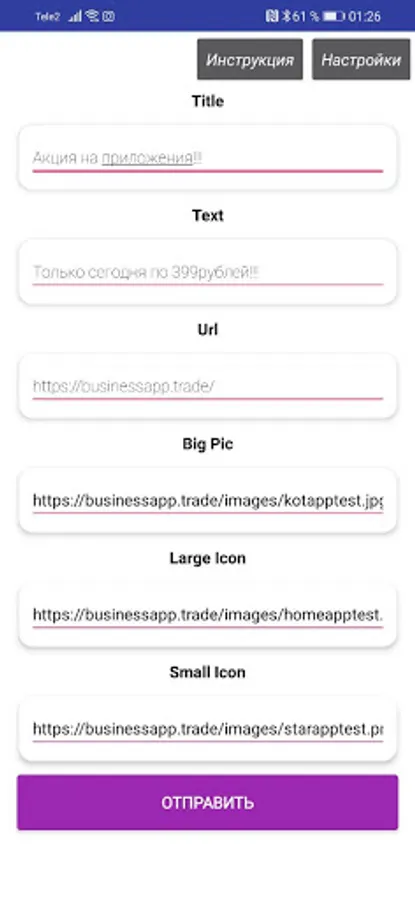 Send PUSH notifications in 1 click directly from your mobile phone.