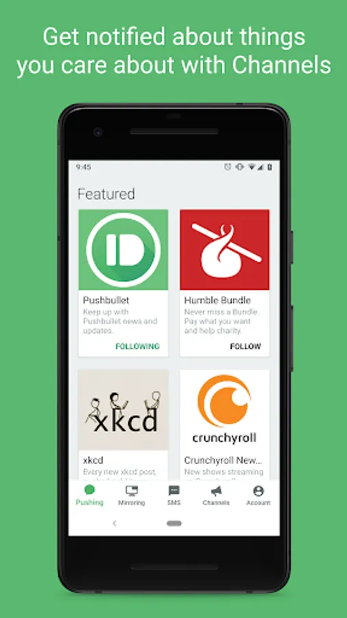 • Use Pushbullet Channels to subscribe to timely notifications about things you care about