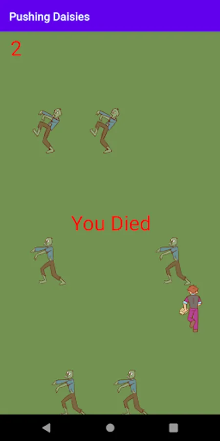 2D plat-former game where you dodge zombies and compare high scores with friends on a leader board.