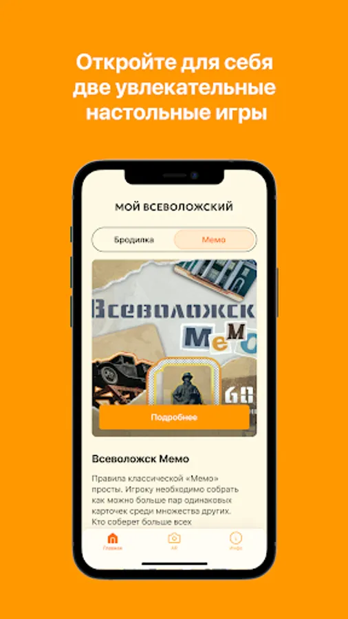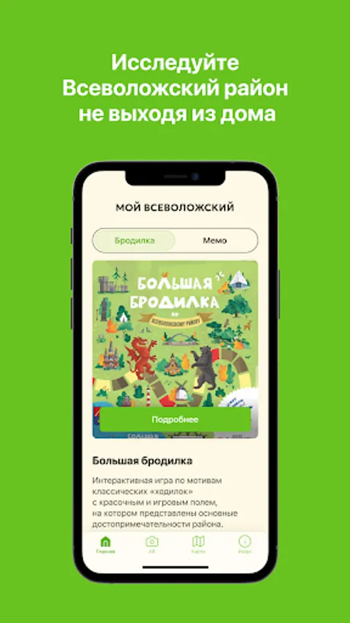 The application allows you to interact with augmented reality (AR) - you will find it in the board games "Big Walker in the Vsevolozhsk District" and "Memo: Vsevolozhsk".