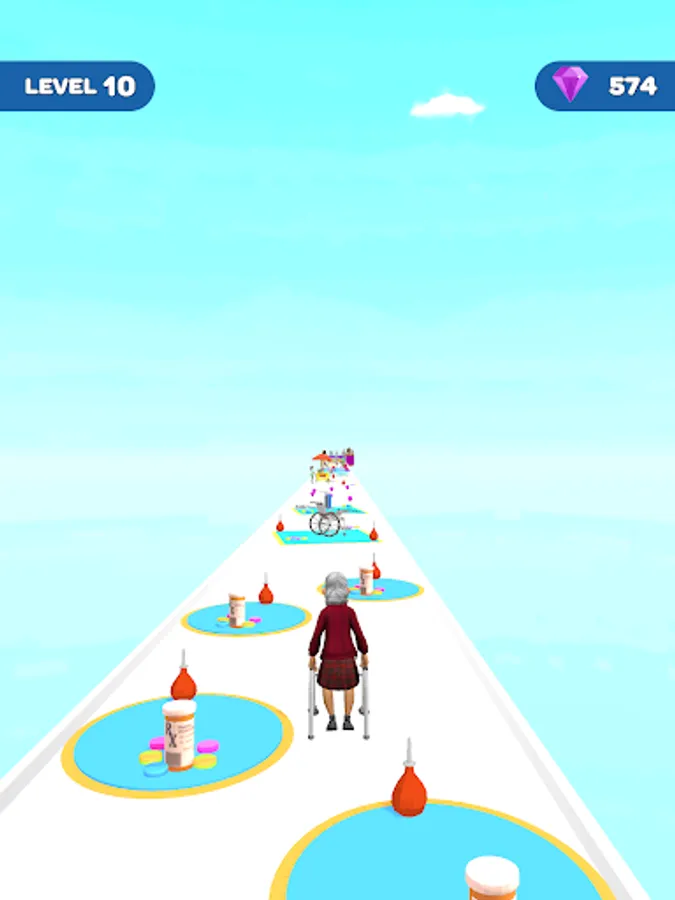 Woah, who is THAT! It’s your lovely granny out on a rampage, of course. Obstacles? Nah, where she’s going that’s not going to stop her. Gems and meds? Yes please, to fuel her adventure towards the very end. And who knows what awaits us at the very end, eh? Well, this granny is about to find out. And there’s literally no one and no thing that dares to stop her.
