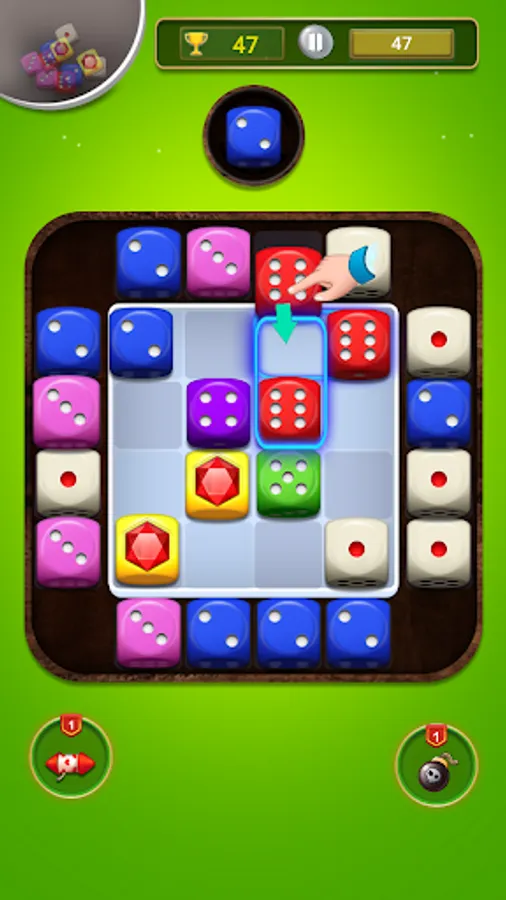 ⭐Use bomb power drag into the grid and destroy + horizontal Dice